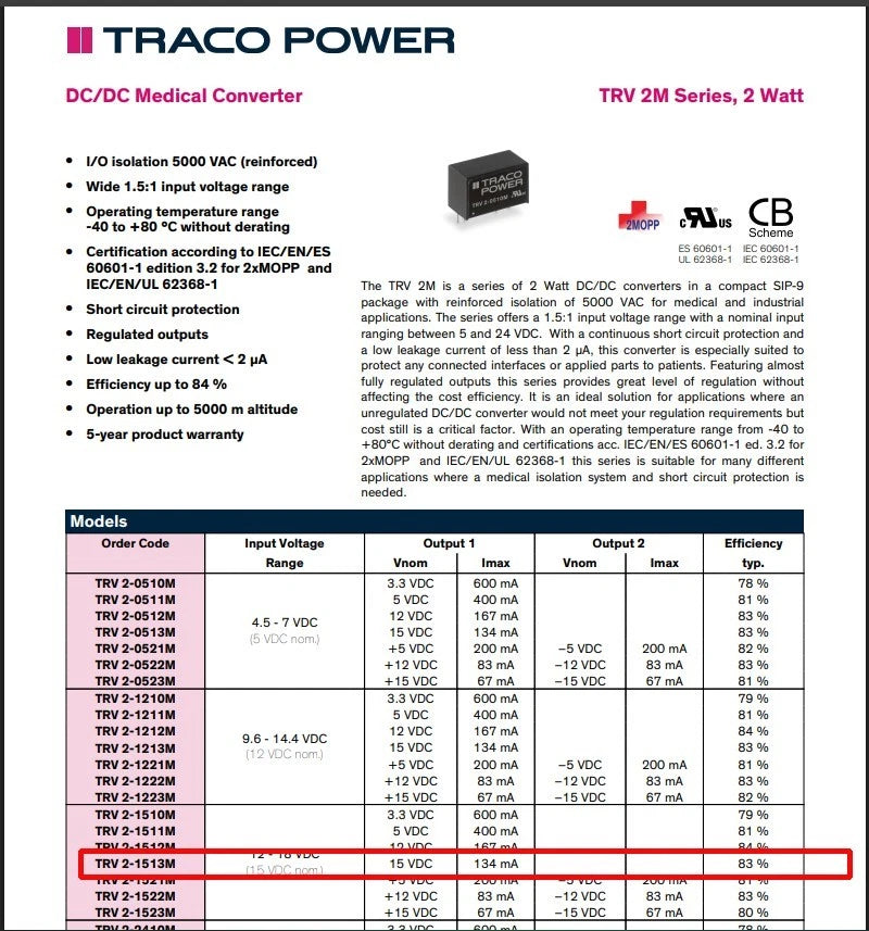 10pcs TracoPower 2 Watt DC DC Converter TRV 2-1513M 15v 134mA Isolated 5Kv