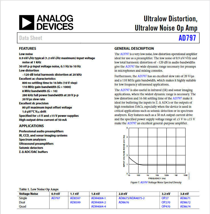 2pcs Genuine AD797AR Microphone Pre amplifier Ultra Low Noise Amplifier