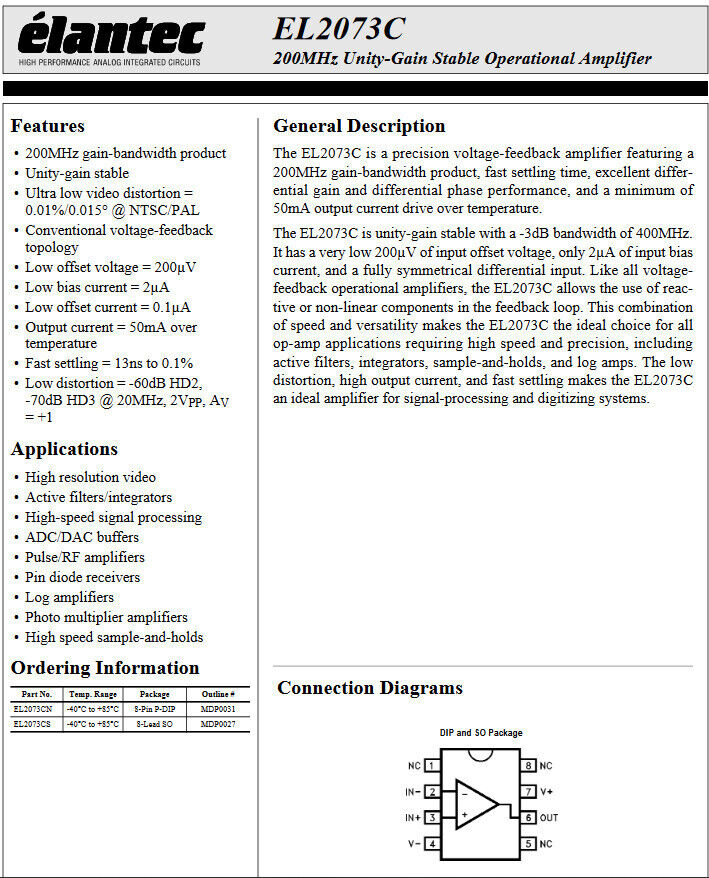 2pcs Genuine EL2073C 200MHz Unity Gain Stable Operational Amplifier taken out of fully working military equipmentCouldn't load pickup availability