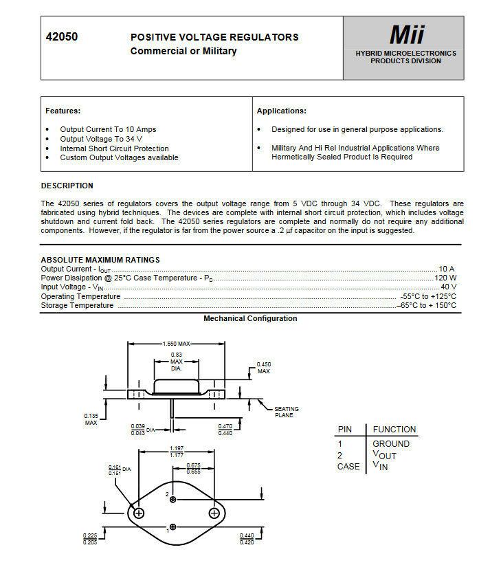 3pcs 24v 4A Linear Voltage Regulator 42050 -244 Military Part