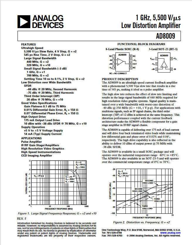 4pcs Genuine AD8009 Low Distortion High Speed Operational Amplifier 1 GHz