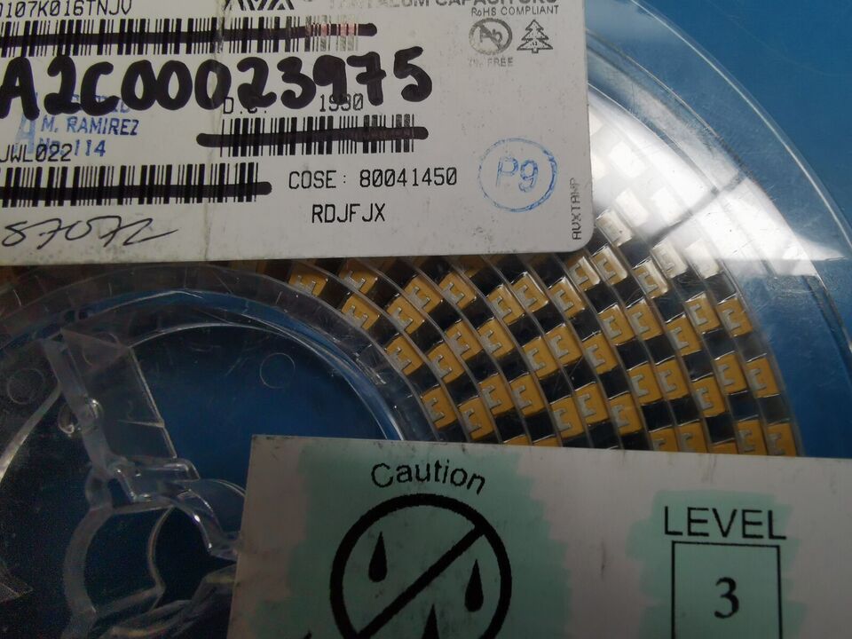 Genuine AVX tantalum Capacitor full Reel 500pcs 100uF 16v , In new old stock from de commissioned uk R&D lab