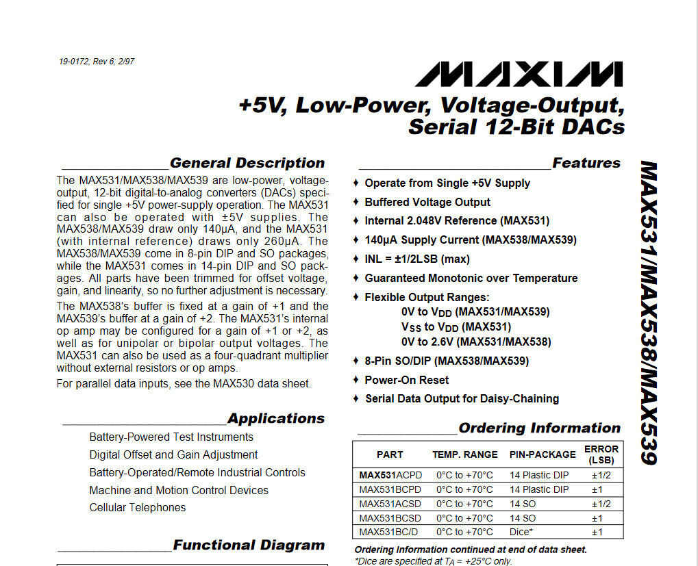Genuine Maxim MAX531AESD 12 Bit Digital to Analog Converter 14-SOIC