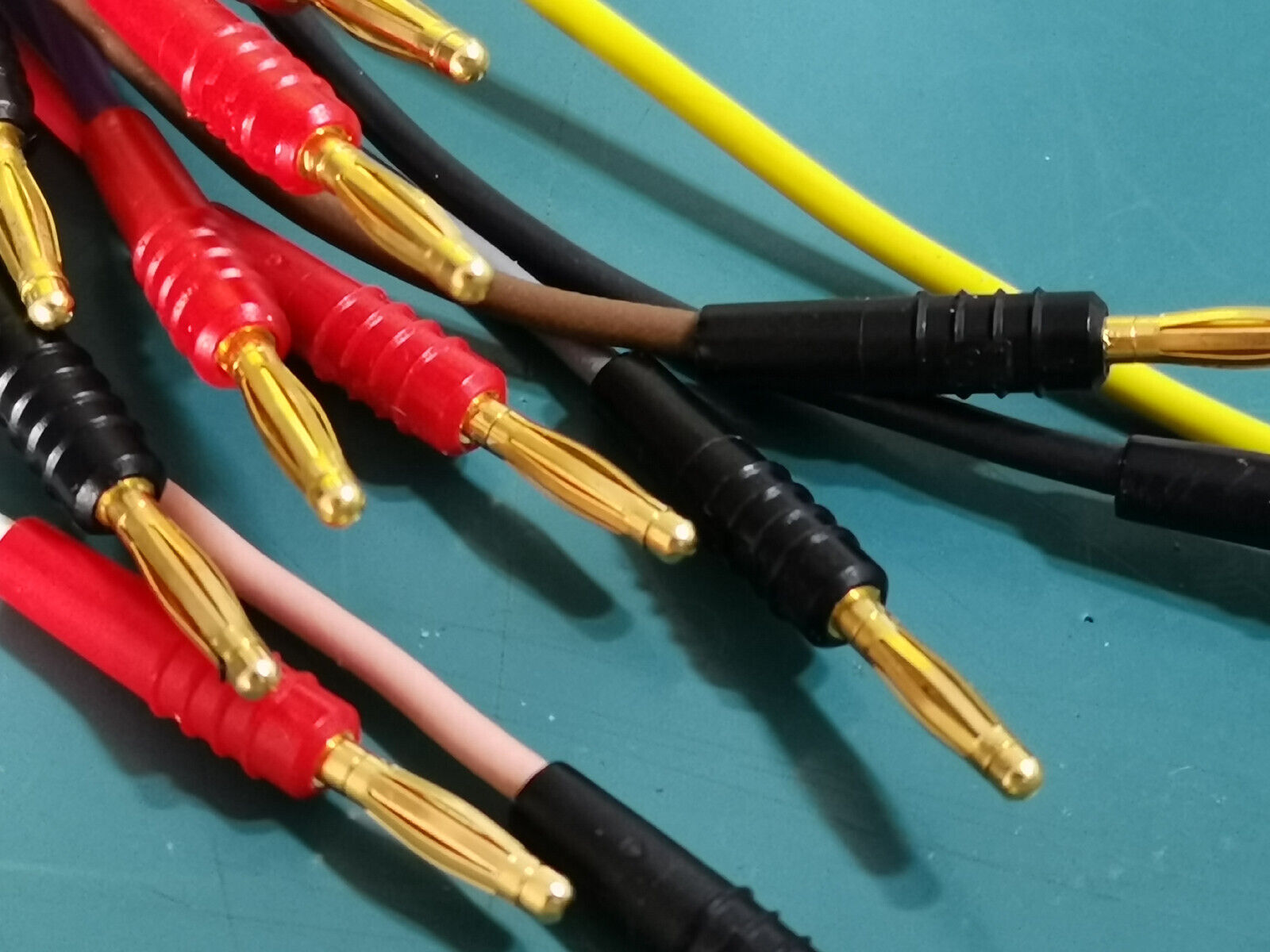 High quality MC brand 3mm banana connectors from de commissioned R&D lab. In very good condition. the conatct measures 3mm and cable is 33cm long . 12pcs