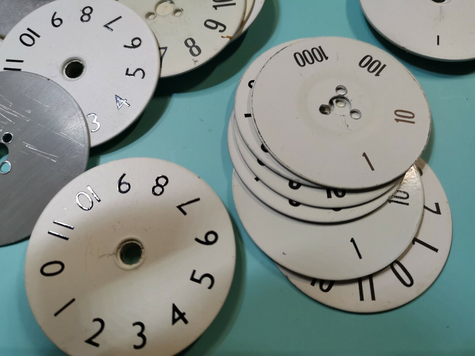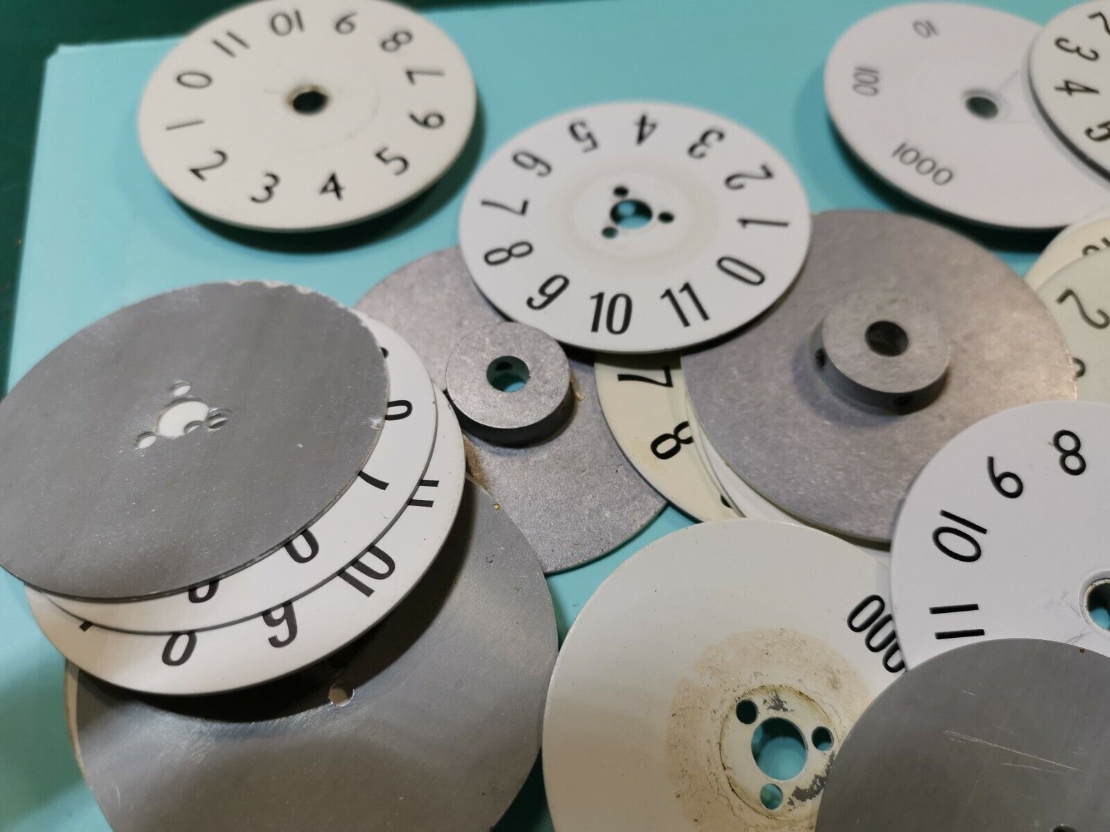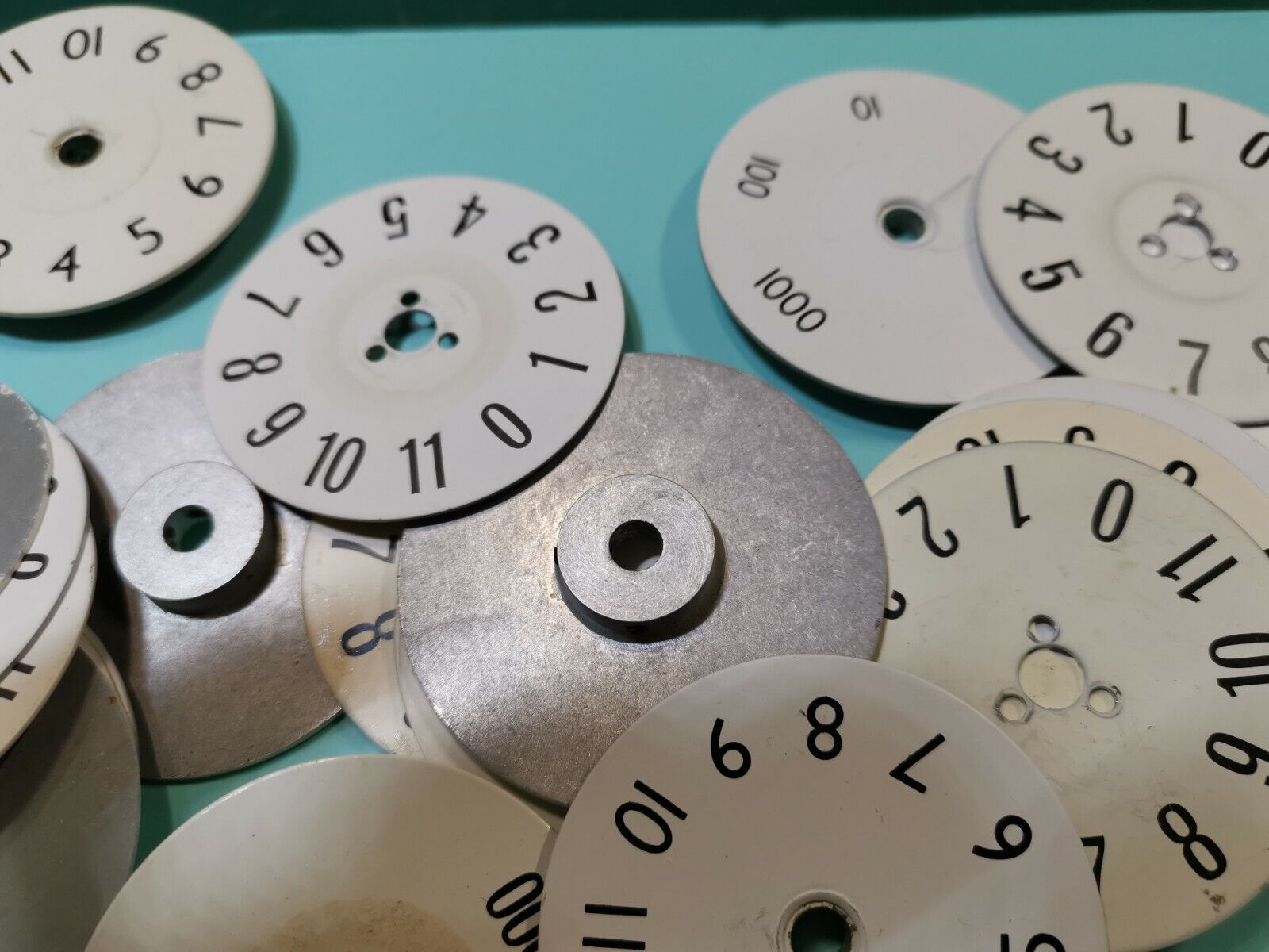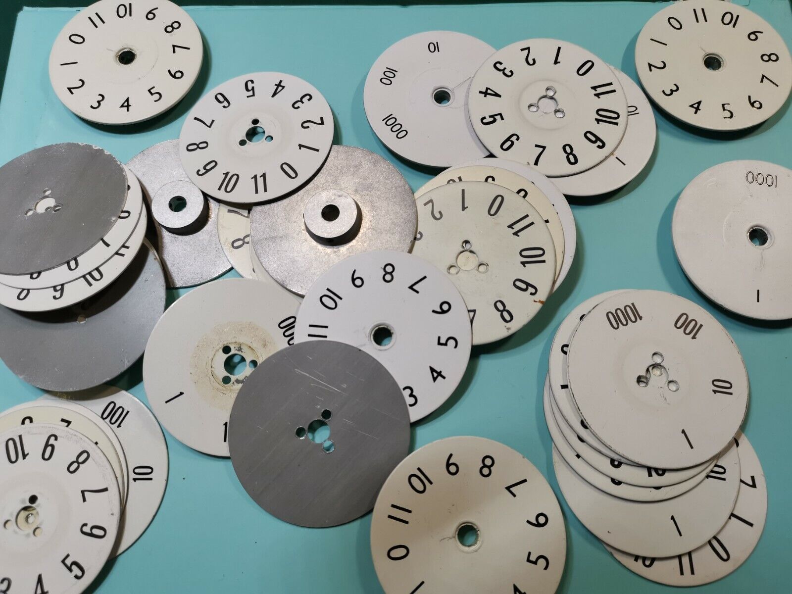 Joblot of numbering plates used for resistors standard from a military equipment, 0 to 10 and 1 , 10 , 100 , 1000 sets. Some are screw type and some are shaft set type. 35pcs and 60mm in diameters.Couldn't load pickup availability